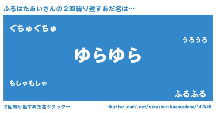 | ヘコむあだ名 | 『ふるはたあい(遠い目)』『ふるにー』 |