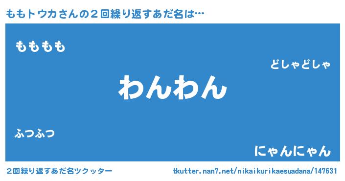 | 男性向けラノベタイトル風あだ名 | 『ももトウカに滅ぼされるだけの簡単なお仕事です』 |