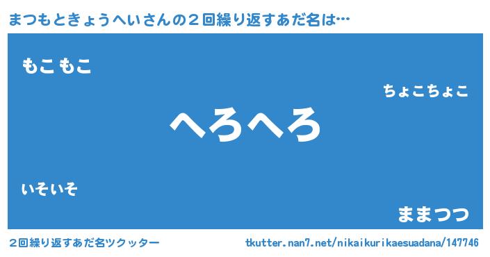 | 女子向けラノベタイトル風あだ名 | 『まつもときょうへい恋絵巻』 |