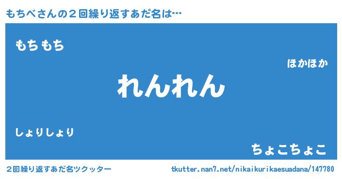 | 男性向けラノベタイトル風あだ名 | 『転生したらもちべだった件』 |