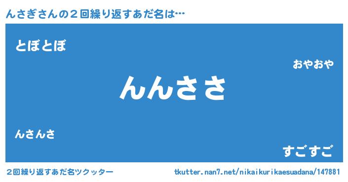 意味不明あだ名 | 『んさぎフォーエバー』『ペロリンんさぎ』 |