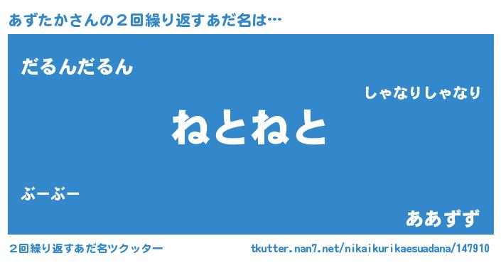 | ヘコむあだ名 | 『あずお』『牛乳』『あずにゅー』 |