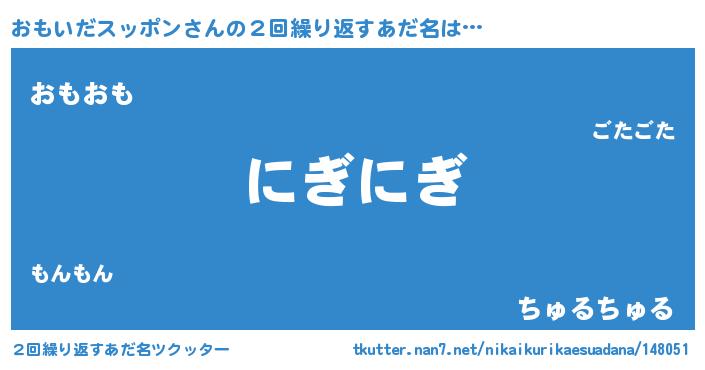 | 欧米人風あだ名 | 『ウサインおもいだスッポン』 |