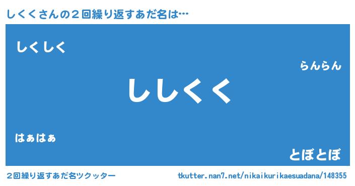 | 意味不明あだ名 | 『しくくフォーエバー』『ペロリンしくく』 |