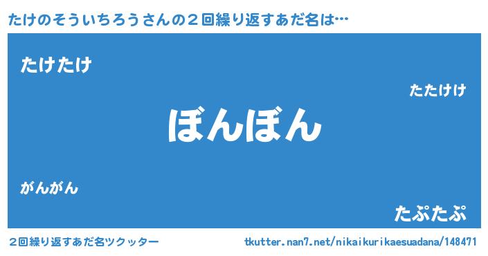 | 男性向けラノベタイトル風あだ名 | 『ノーゲーム・ノータケノソウイチロウ』 |