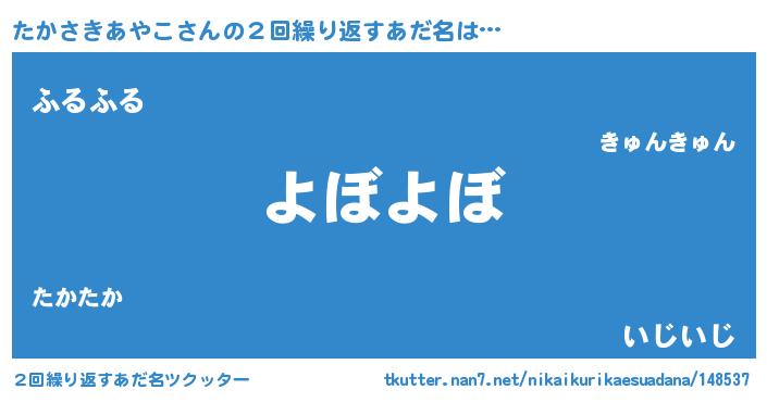 | ヘコむあだ名 | 『たかお』『たかさきあやこ(小並感)』 |