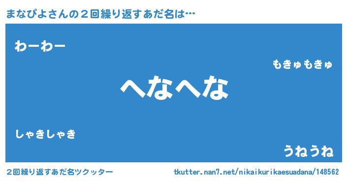 | 欧米人風あだ名 | 『ダニエルまなぴよ』『ウサインまなぴよ』 |