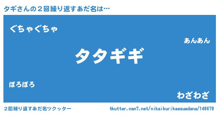 | 意味不明あだ名 | 『タギフォーエバー』『永久保存タギ』 |