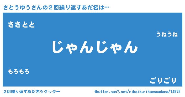 | 意味不明あだ名 | 『住所不定無職さとうゆう(47歳)』 |