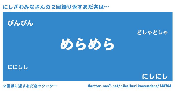 | 肩書あだ名 | 『にしざわみな総統』『にしざわみな艦長』 |