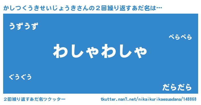 | 欧米人風あだ名 | 『トリンドルかしつくうきせいじょうき』 |