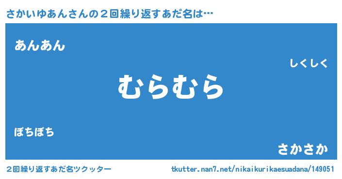 | 意味不明あだ名 | 『自称さかいゆあん』 |