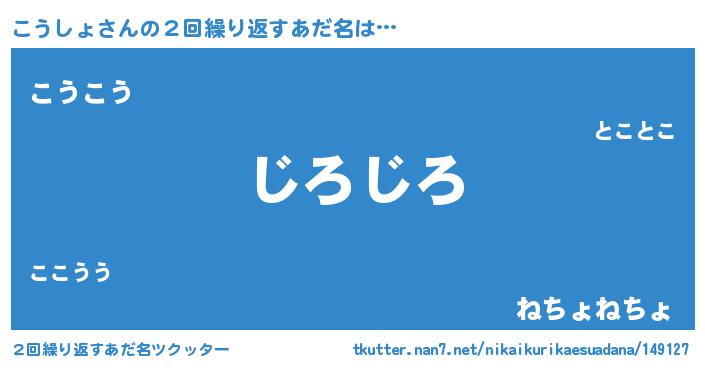 | 意味不明あだ名 | 『住所不定無職こうしょ(9歳)』 |