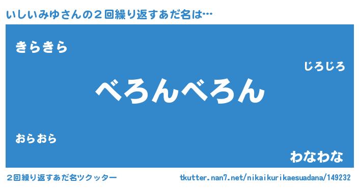 | ヘコむあだ名 | 『いしいみゆ(爆)』『いしお』 |