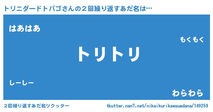 | 意味不明あだ名 | 『ペロリントリニダードトバゴ』 |