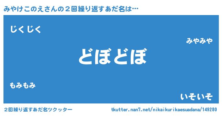 | ヘコむあだ名 | 『みやぷりん』『みやもー』『豆乳』 |