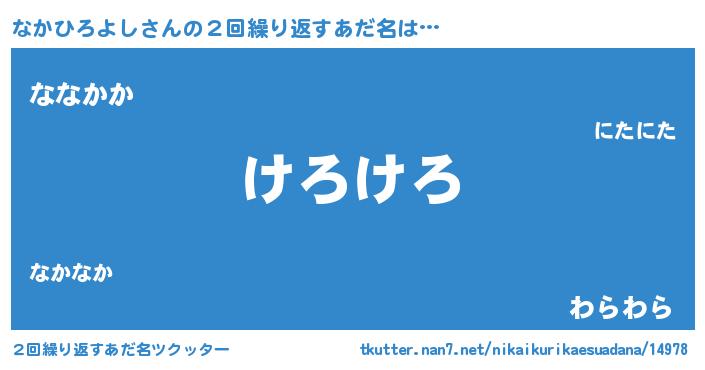 | 胡散臭い通販商品みたいなあだ名 | 『前代未聞の健康食品…その名も「なかひろよし」』 |