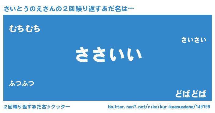 | 意味不明あだ名 | 『さいとうのえフォーエバー』 |