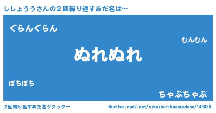 | ヘコむあだ名 | 『しし太郎』『ししょうう(苦笑)』 |