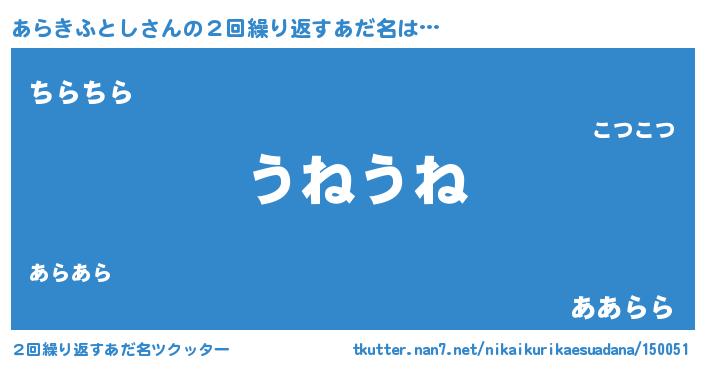 | 意味不明あだ名 | 『とにかく怪しいあらきふとし』 |
