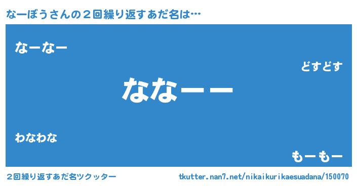 | 意味不明あだ名 | 『なーぼうフォーエバー』『自称なーぼう』 |