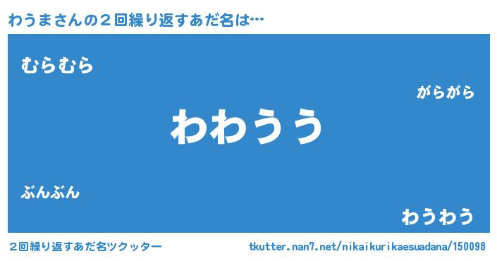 | ヒーロー風カッコイイあだ名 | 『ウルトラわうまマン』『スーパーワウマ』 |