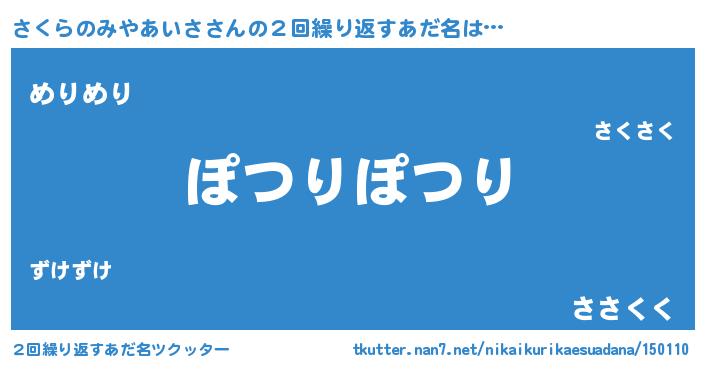 | 胡散臭い通販商品みたいなあだ名 | 『モンドセレクションを受賞した隕石のかけら…その名も「さくらのみやあいさ」』 |