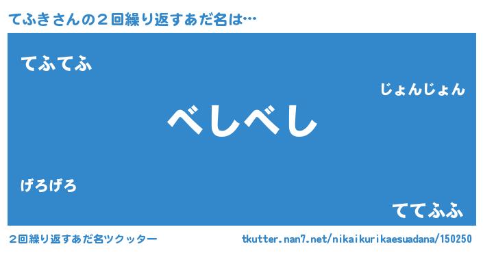 | 欧米人風あだ名 | 『ダニエルてふき』『マイケルてふき』 |