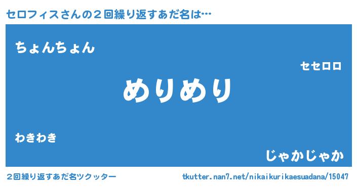 | 男性向けラノベタイトル風あだ名 | 『Re:セロフィスから始める異世界生活』 |