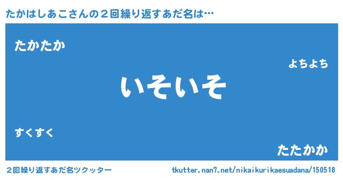 | 欧米人風あだ名 | 『ウサインたかはしあこ』 |