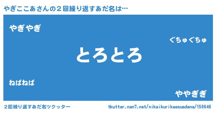 | 胡散臭い通販商品みたいなあだ名 | 『億万長者になれるブレスレット…その名も「やぎここあ」』 |