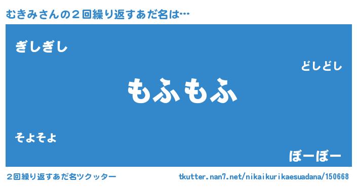 | 男性向けラノベタイトル風あだ名 | 『Re:むきみから始める異世界生活』 |