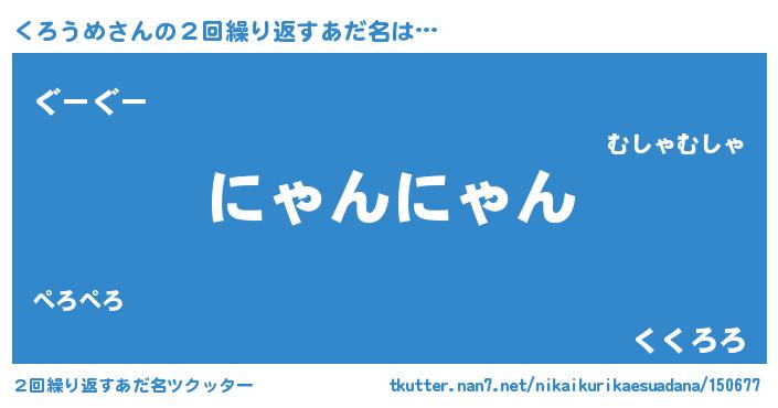 | 可愛いあだ名 | 『くっろぃー』『くろうめママ』 |