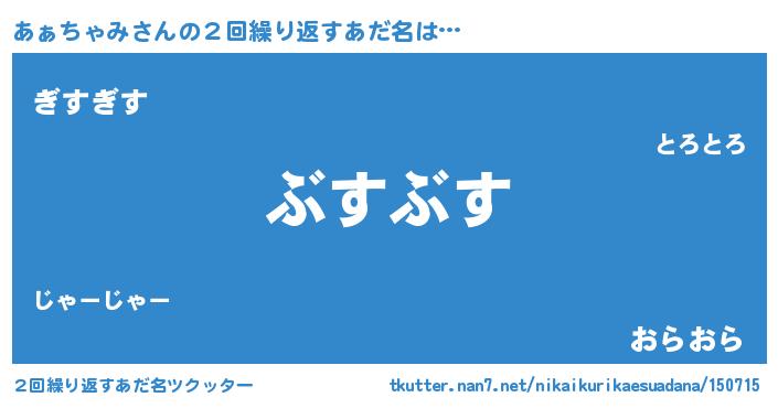 | ヘコむあだ名 | 『あぁちゃみ(苦笑)』『あぁお』 |