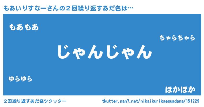 | 意味不明あだ名 | 『住所不定無職もあいりすなー(1歳)』 |