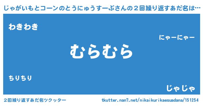 | 意味不明あだ名 | 『自称じゃがいもとコーンのとうにゅうすーぷ』 |