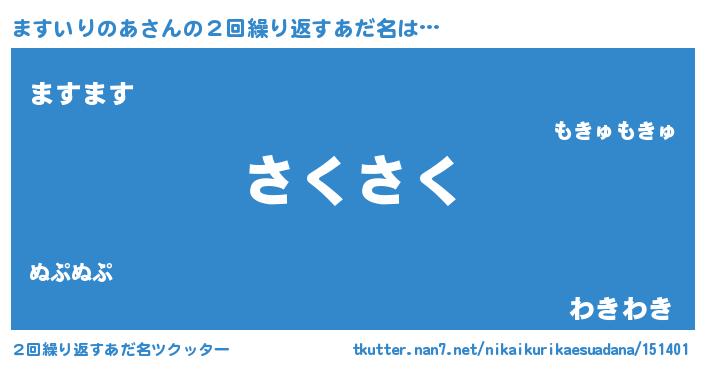 | 意味不明あだ名 | 『住所不定無職ますいりのあ(56歳)』 |