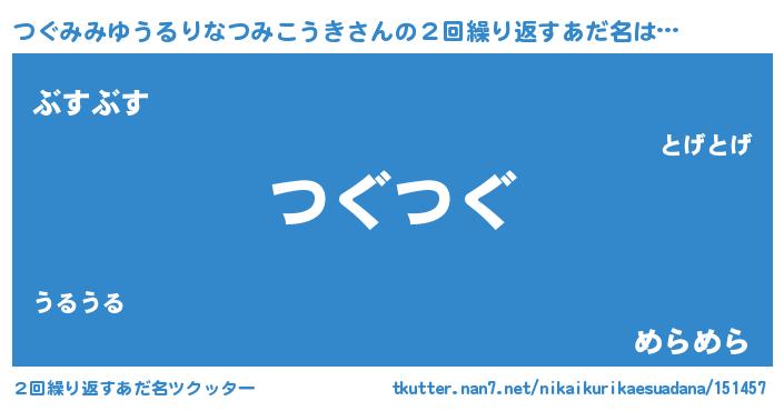 | 欧米人風あだ名 | 『マイケルつぐみみゆうるりなつみこうき』 |