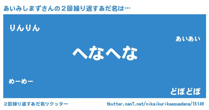 | 欧米人風あだ名 | 『ダニエルあいみしまず』 |