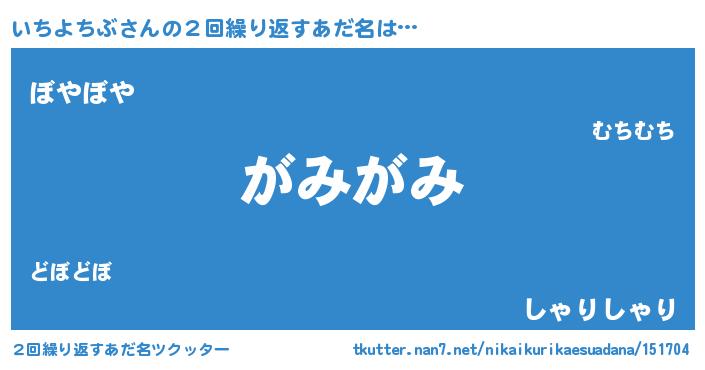 | 意味不明あだ名 | 『永久保存いちよちぶ』『自称いちよちぶ』 |