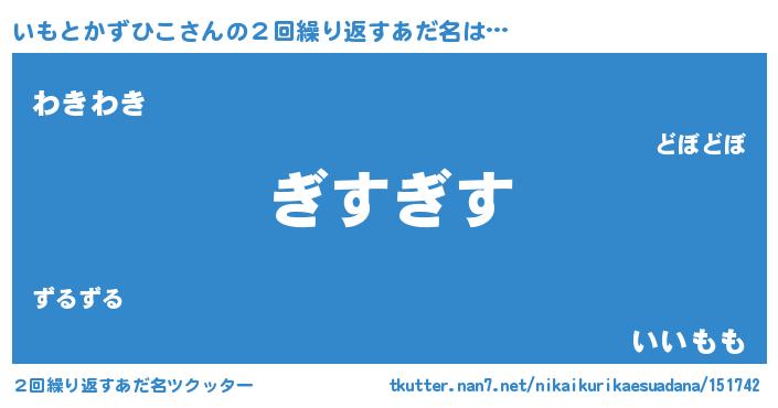 | ヘコむあだ名 | 『いもとかずひこ(遠い目)』『なまこ酢』 |
