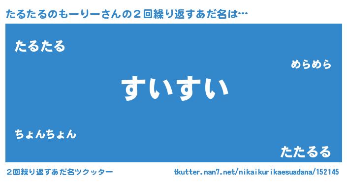 | 意味不明あだ名 | 『住所不定無職たるたるのもーりー(89歳)』 |