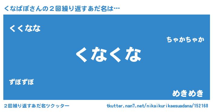 | 意味不明あだ名 | 『ペロリンくなぱぽ』『自称くなぱぽ』 |