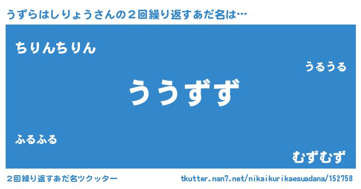 | 意味不明あだ名 | 『うずらはしりょうフォーエバー』 |