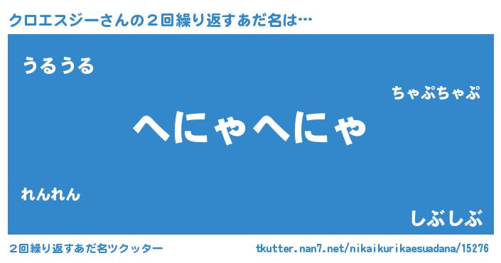 | ヘコむあだ名 | 『クロお』『クロエスジー(遠い目)』 |