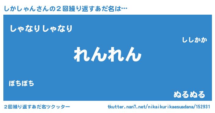 | 男性向けラノベタイトル風あだ名 | 『転生したらしかしゃんだった件』 |