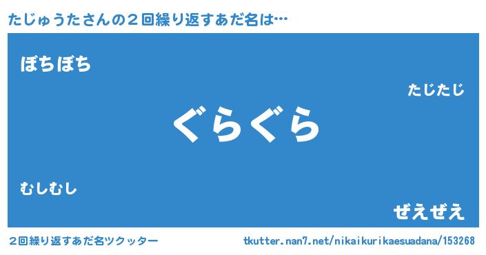 | ヘコむあだ名 | 『たじゅうた(笑)』『たじっふぃ~』 |