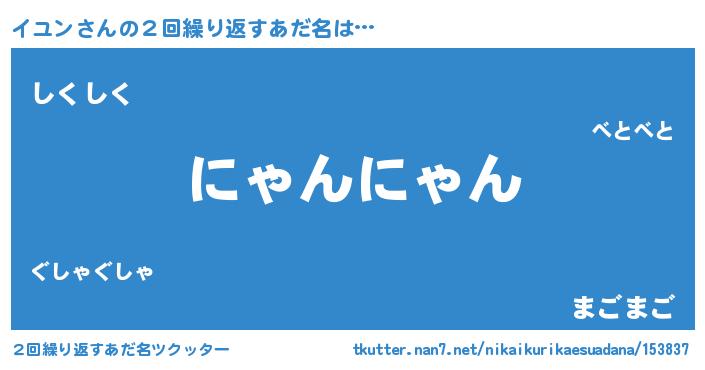 | 男性向けラノベタイトル風あだ名 | 『イユンの嫁は女の子じゃないと思った?』 |