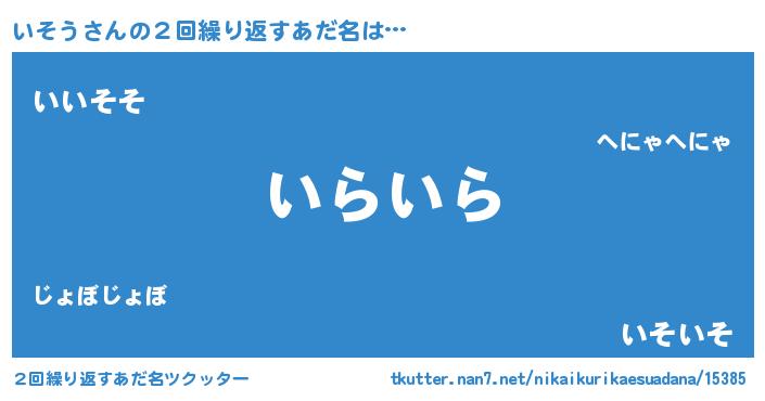 | 女子向けラノベタイトル風あだ名 | 『いそうは平凡を望む』『いそう恋絵巻』 |