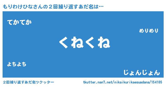 | ヘコむあだ名 | 『もりわけひな(爆)』『もりもー』 |